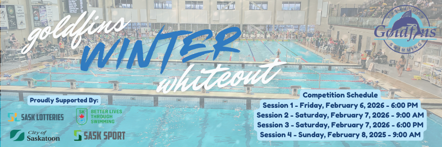 Check out the 2026 Goldfins Winter Whiteout's Event Page for the latest scheduling updates, swim meet program and heat sheet information.